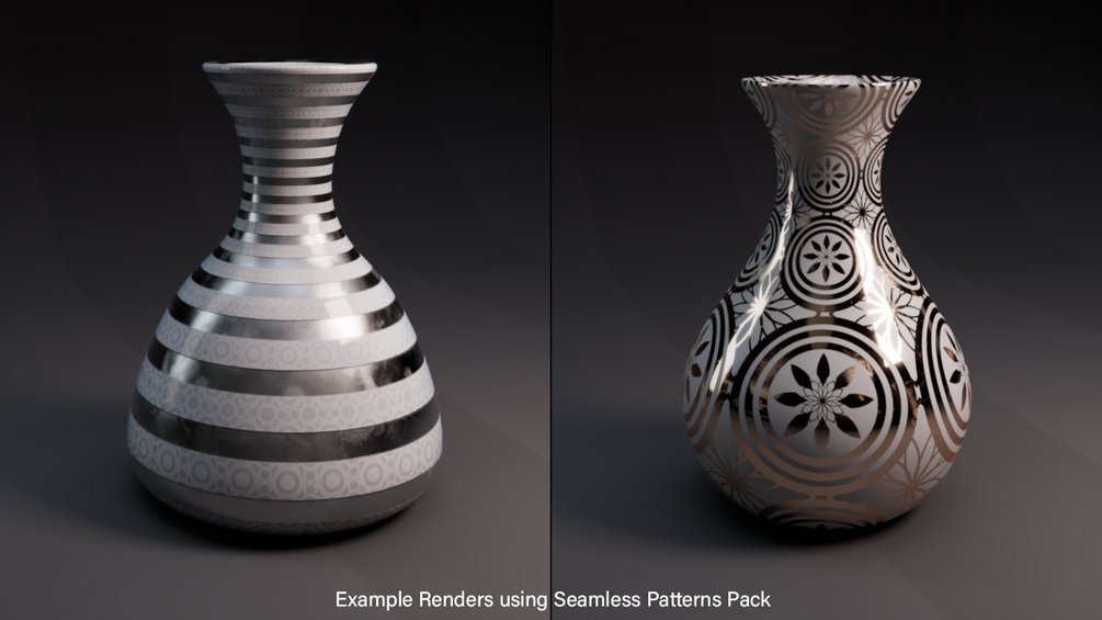 All pots that have patterns made use of the SEAMLESS PATTERNS PACKS also available in the store. :)